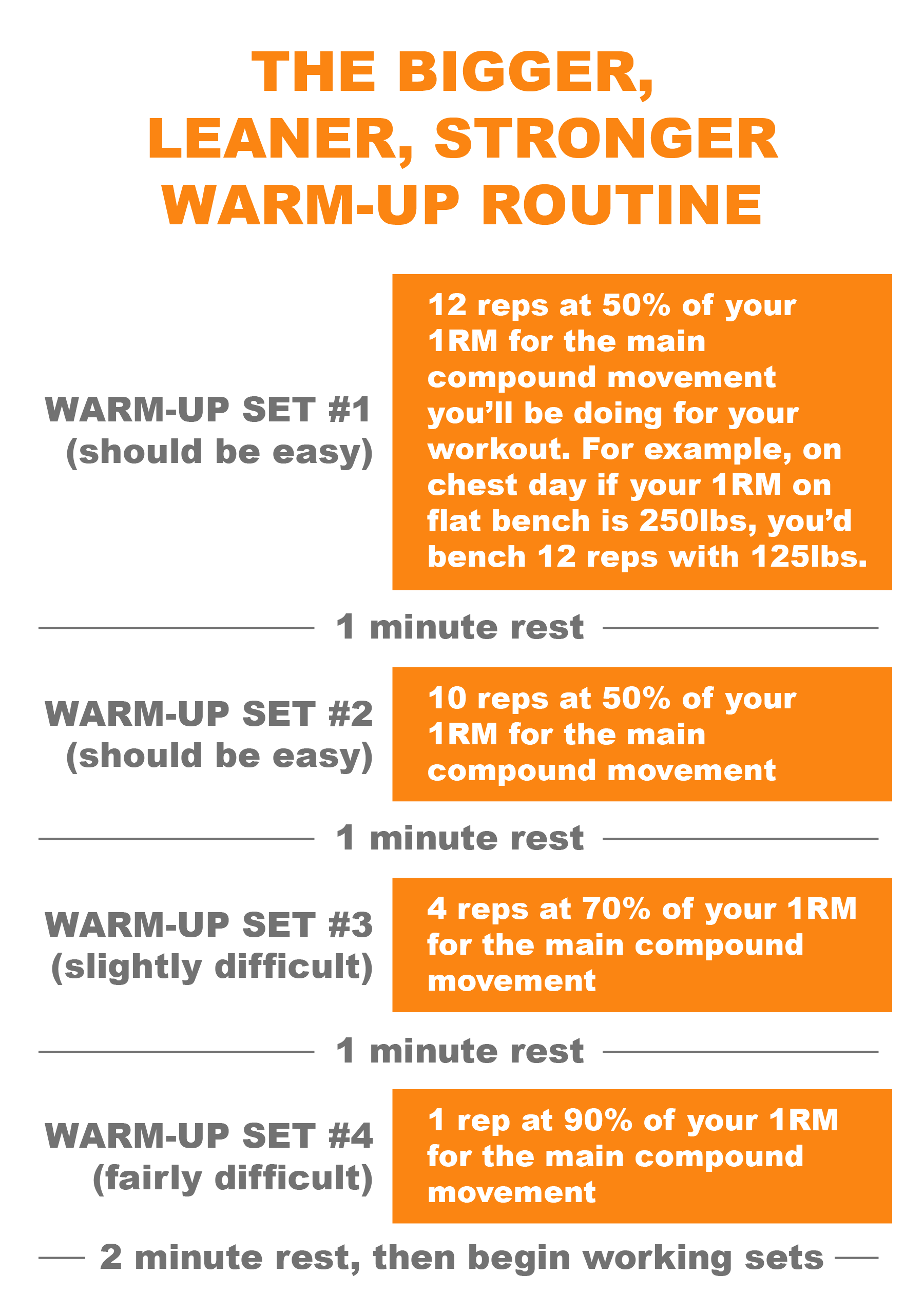 The foundation of your weight training must be heavy, compound lifts. You must maintain proper form through these lifts. NEVER compromise your form in an attempt to lift more weight.