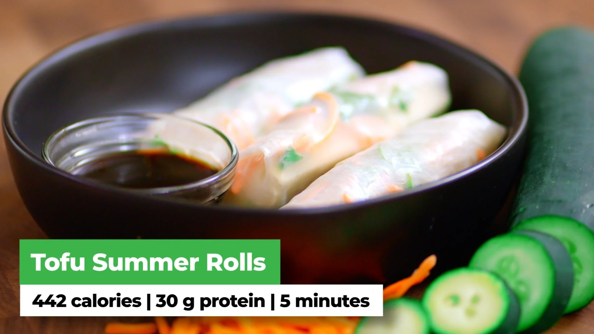 Slice β block of super firm tofu (182g) and Β½ small cucumber (85g) into Β½-inch strips. Slice ΒΌ of an avocado (34g) into thin strips and scoop them out with a spoon.